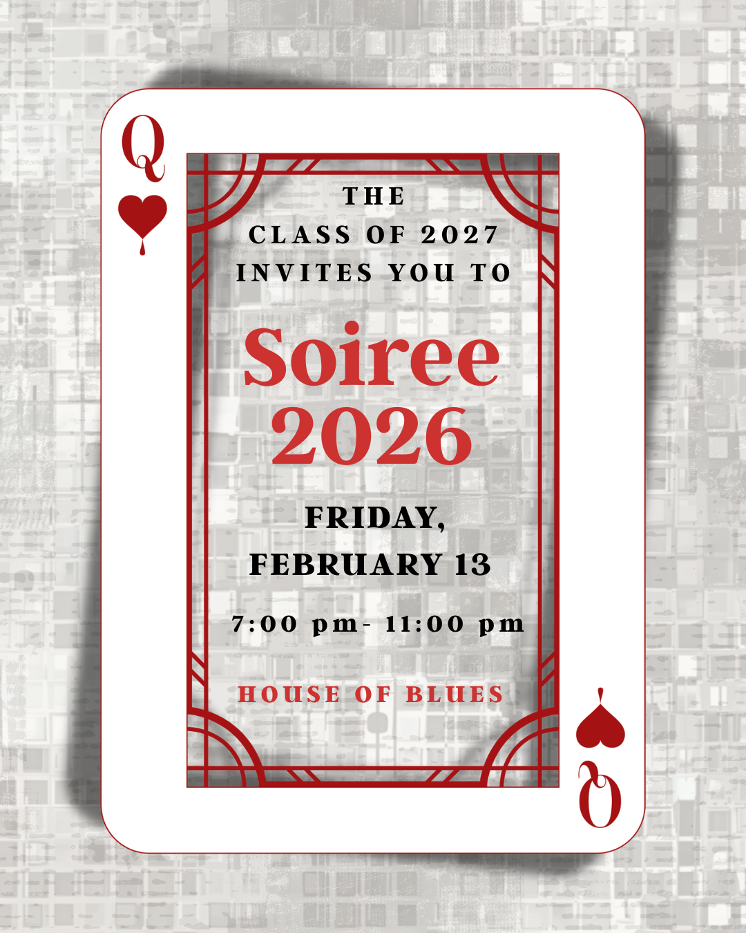 The Class of 2027 is pleased to present Soiree, an event for all Simmons students and guests, on Feb. 13, 2026 from 7-11pm at the House of Blues!