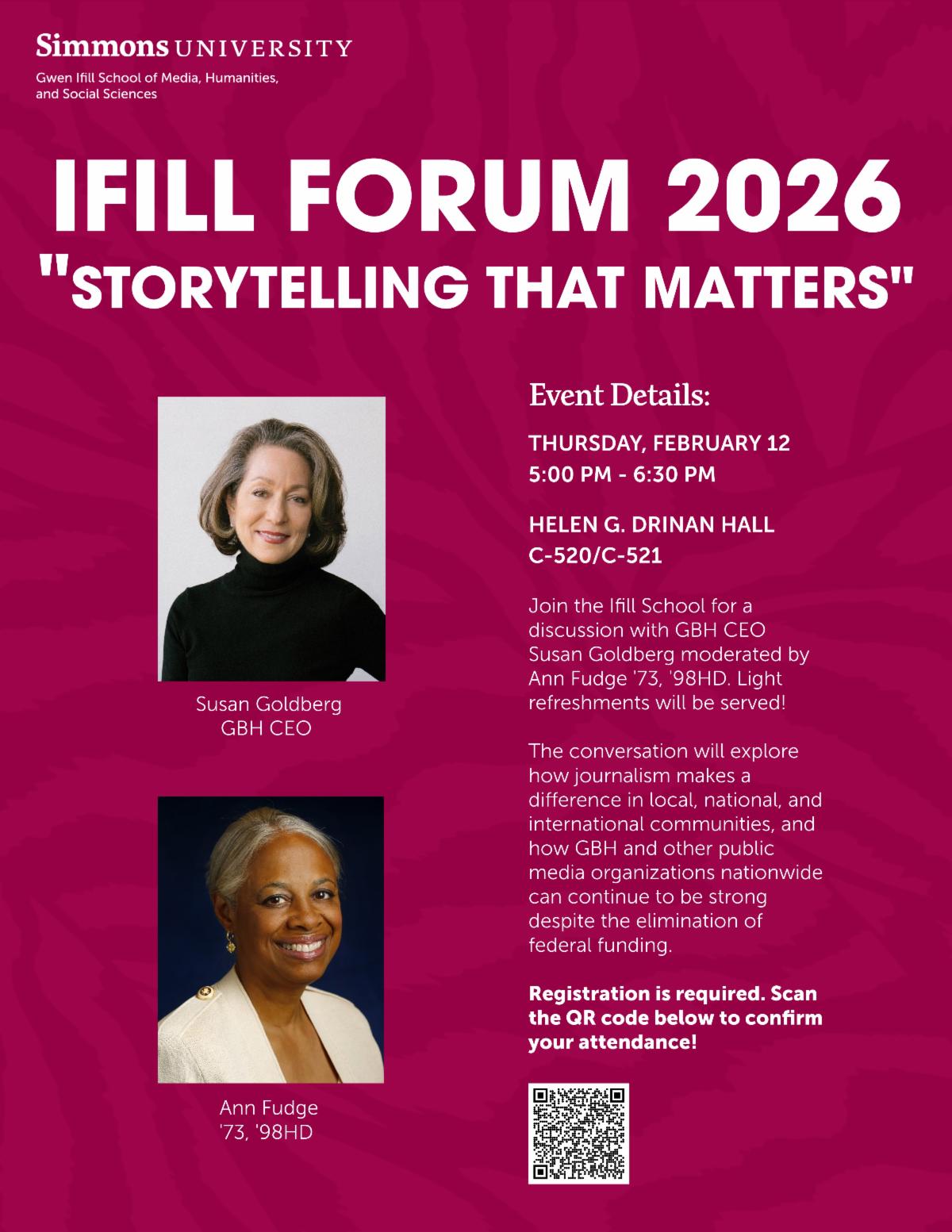 The 2026 Ifill Forum takes place on Simmons University campus and registration is required to attend. Register here!
